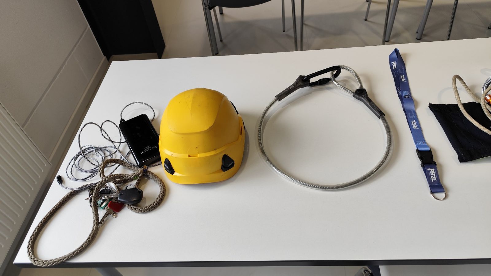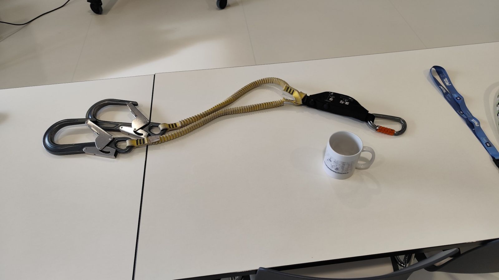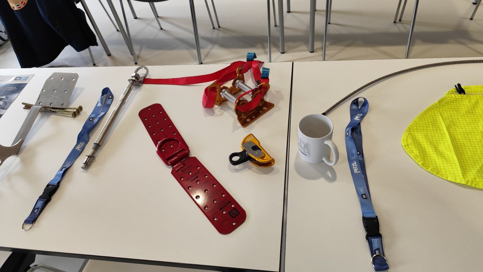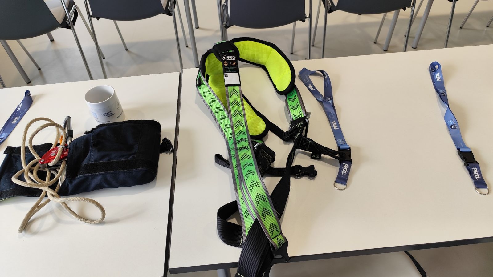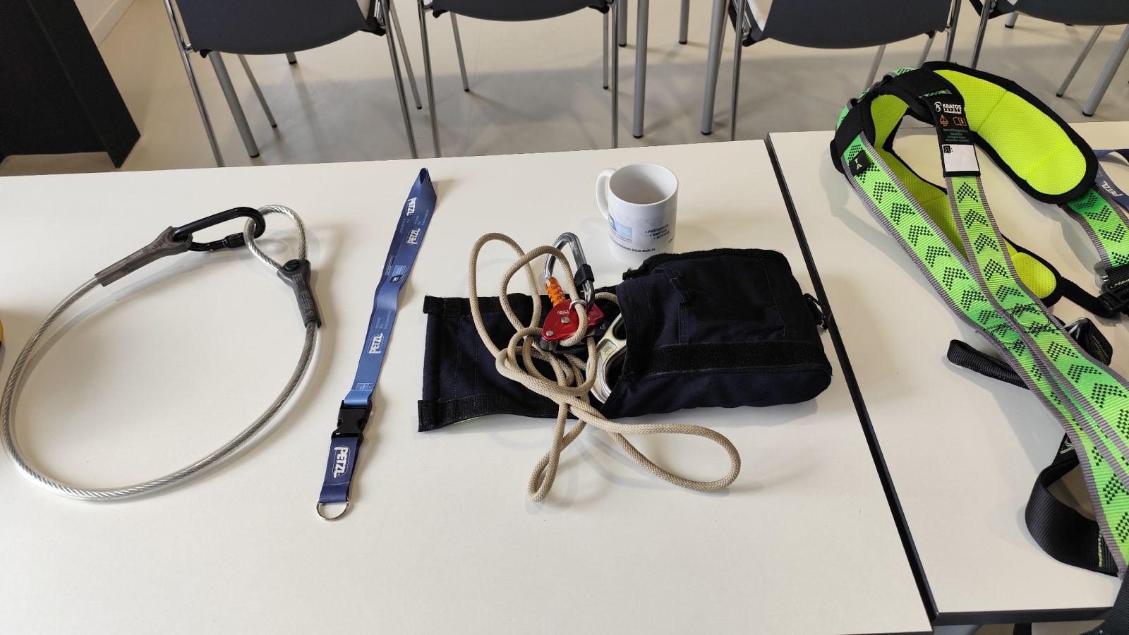 Im Anschluss an die Schulung wurden sämtliche Steig- und Sicherungsgeräte (Gurte, Anschlagmittel, Läufer u. a.) durch den Fachmann vor Ort überprüft, dokumentiert und zertifiziert.