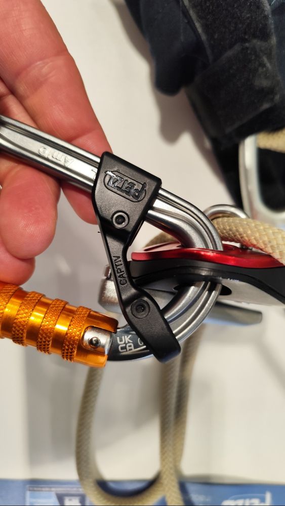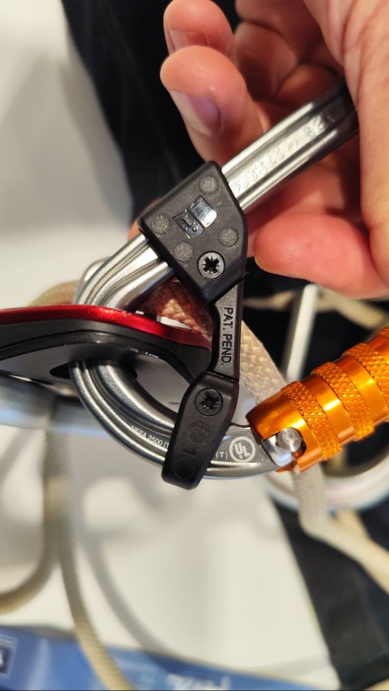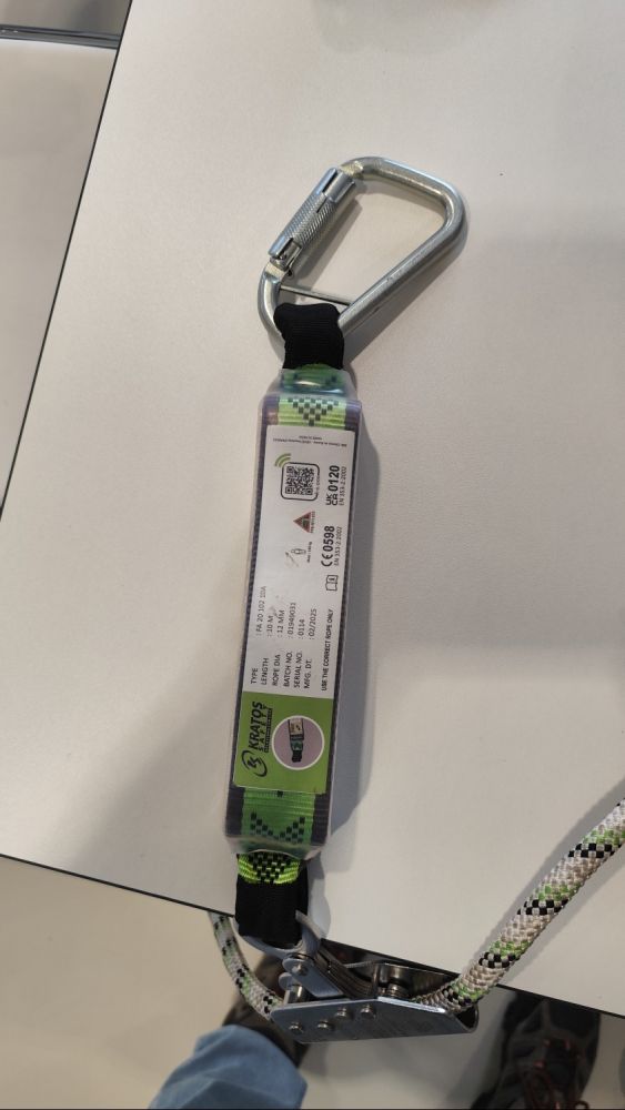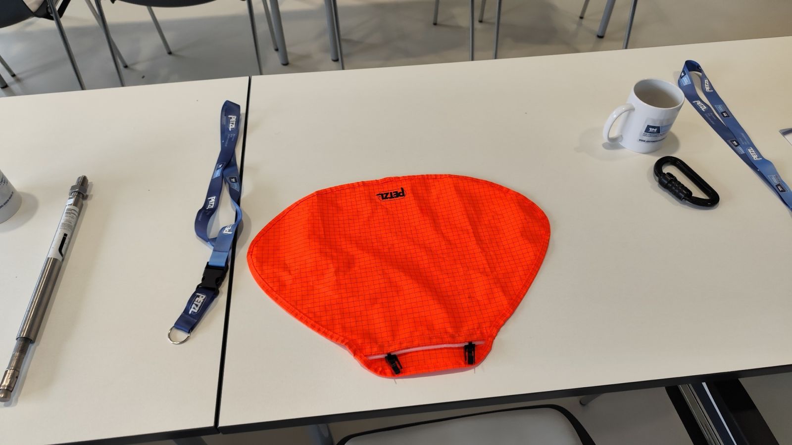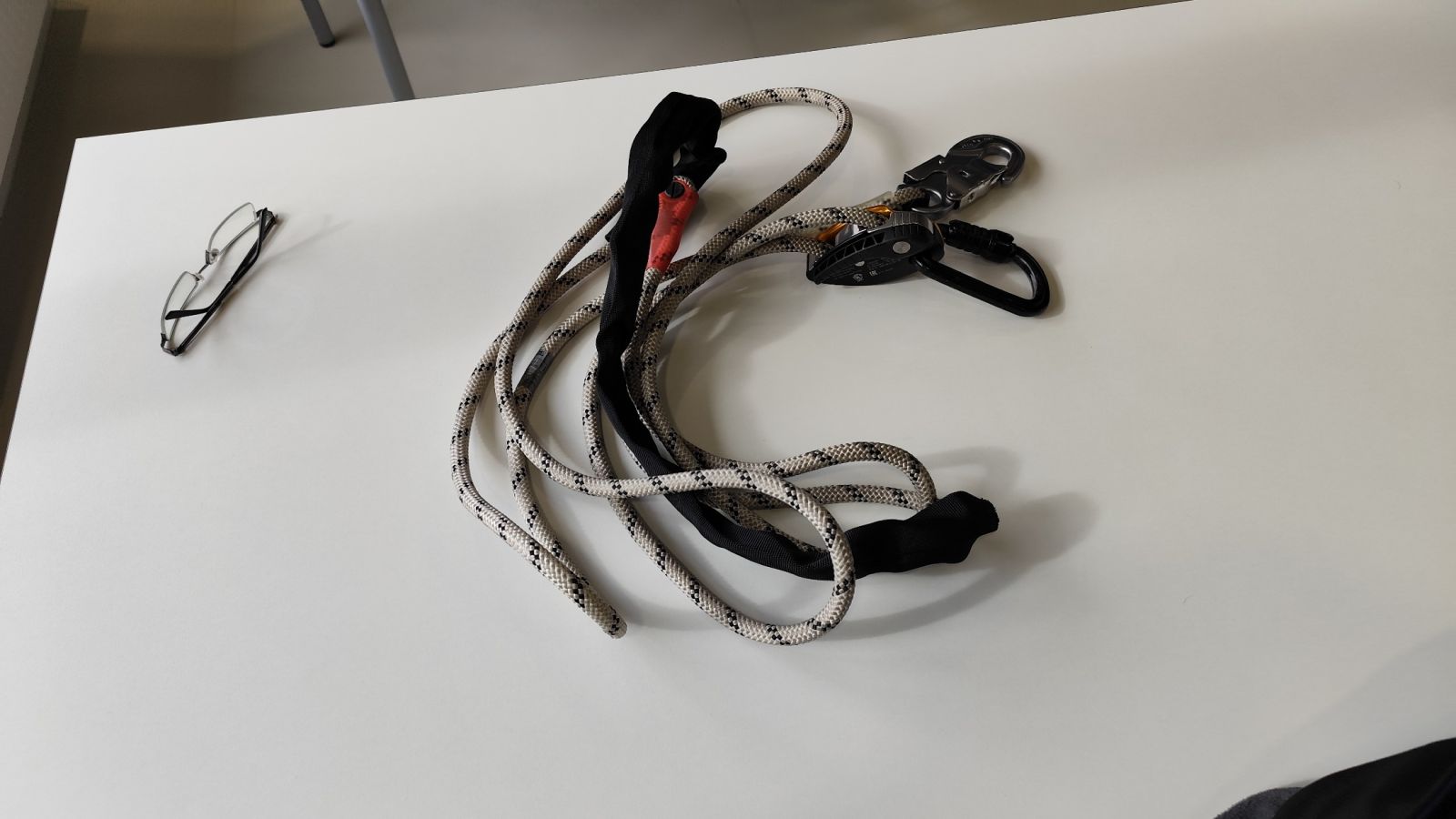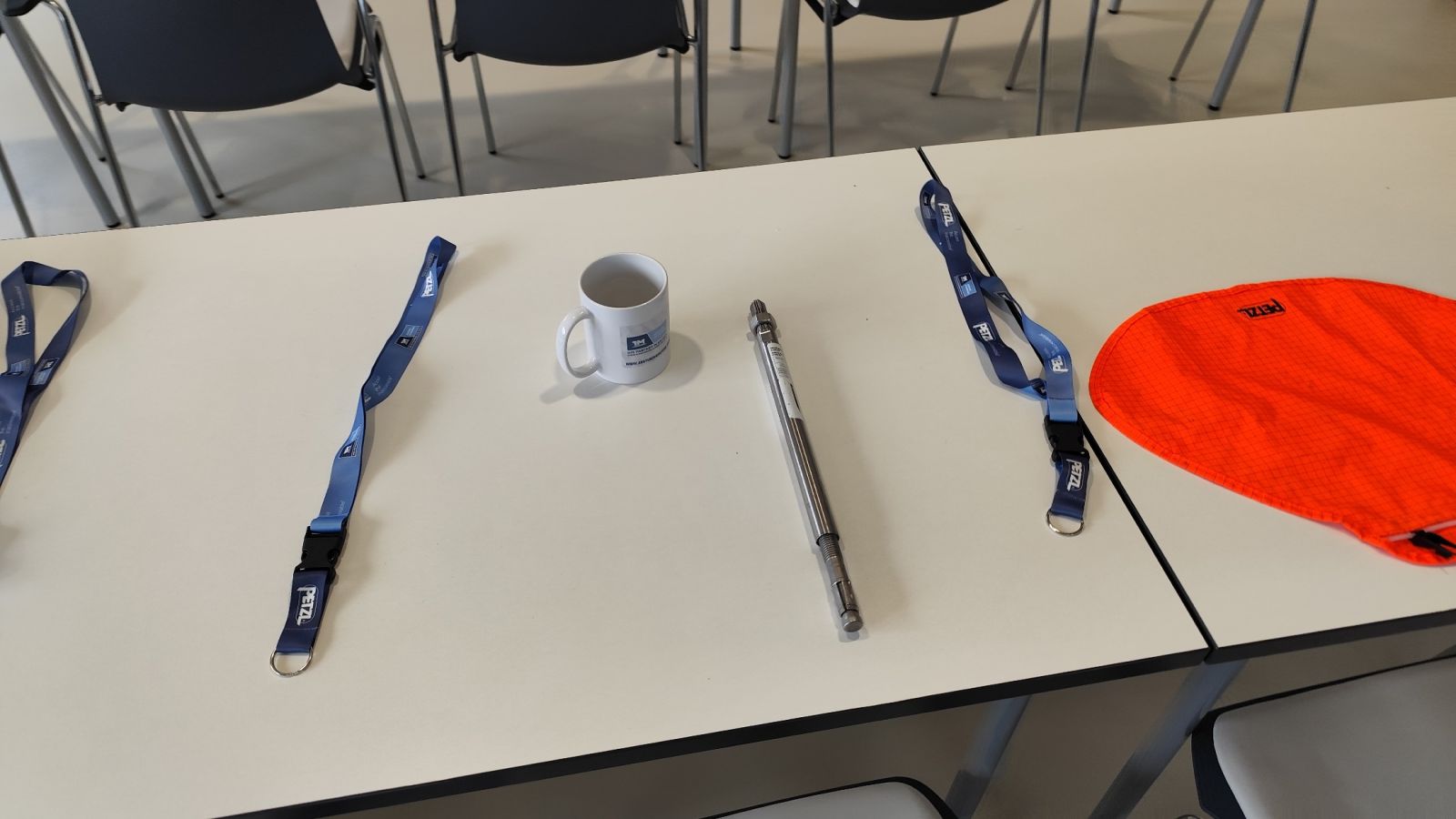 Im Anschluss an die Schulung wurden sämtliche Steig- und Sicherungsgeräte (Gurte, Anschlagmittel, Läufer u. a.) durch den Fachmann vor Ort überprüft, dokumentiert und zertifiziert.