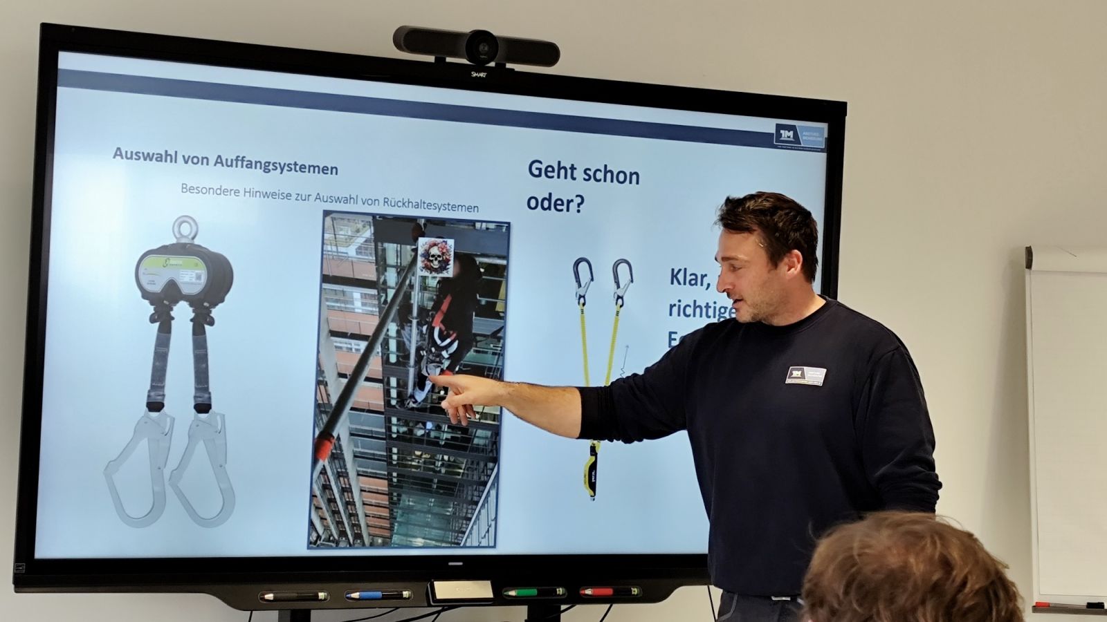 Besprochen wurden die gesetzlichen Rahmenbedingungen, Anforderungen an Gefährdungsbeurteilung, Auswahl und Bewertung der PSAgA-Systeme, die Dokumentationspflichten, sowie die Betriebsanweisungen und Rettungskonzepte für Höhenarbeiten.
