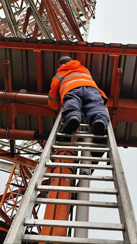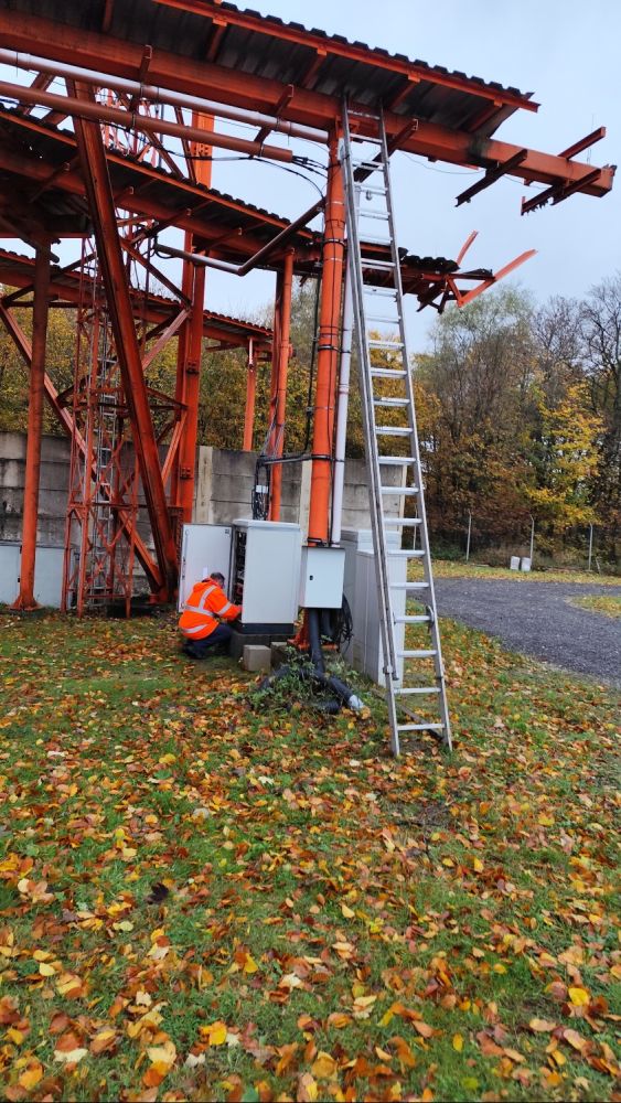 Nur wenige Tage später, am 25. Oktober 2025, installierte die Donnersberg Relais-Gruppe e. V. eine neue Eiswarnlampe an der äußeren Quertraverse des Funkmastes von DB0ND.