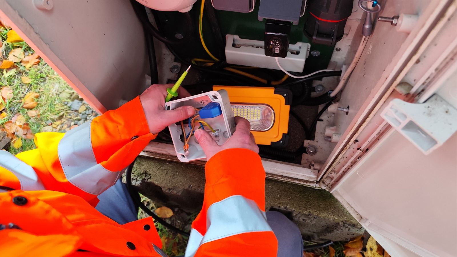 Über einen Shelly Plus 1 Wi-Fi-Schalter wird eine weithin sichtbare Blitzlichtlampe aktiviert, sobald eine Eisbildung von über 3 cm ermittelt wird.